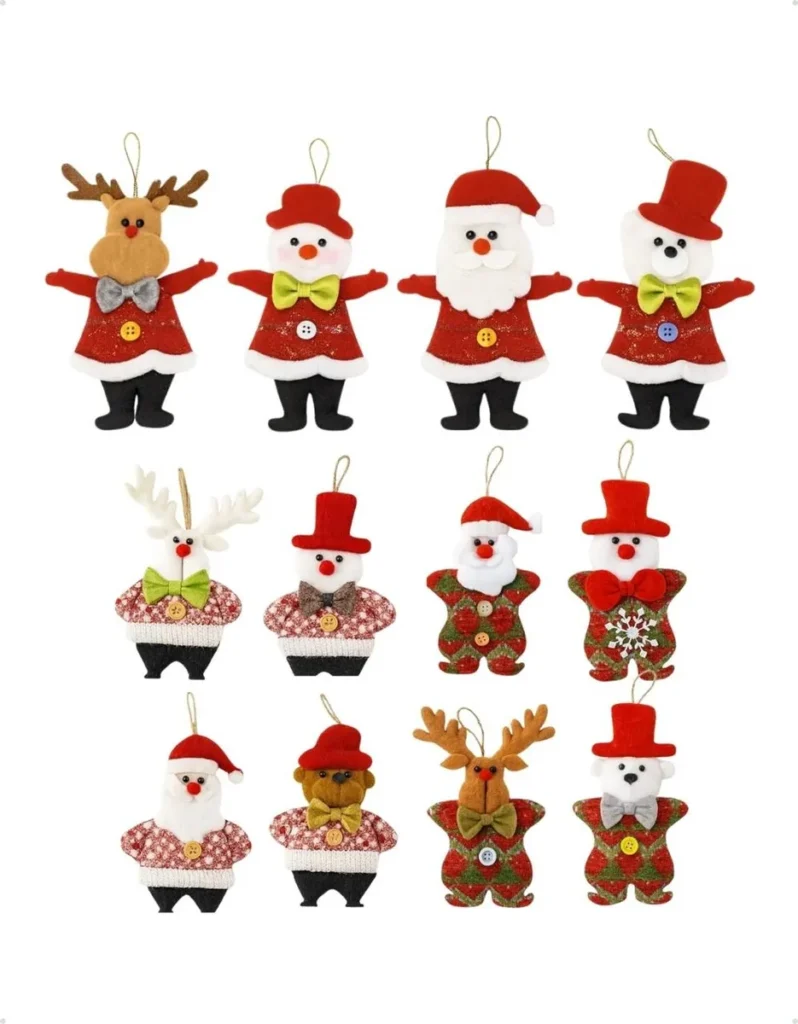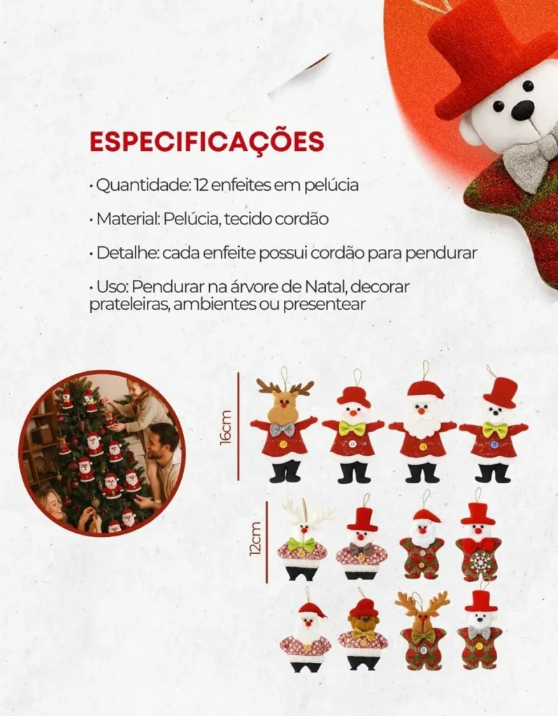 Kit 12 Pendentes Papai Noel Pelúcia Enfeite Árvore Natal